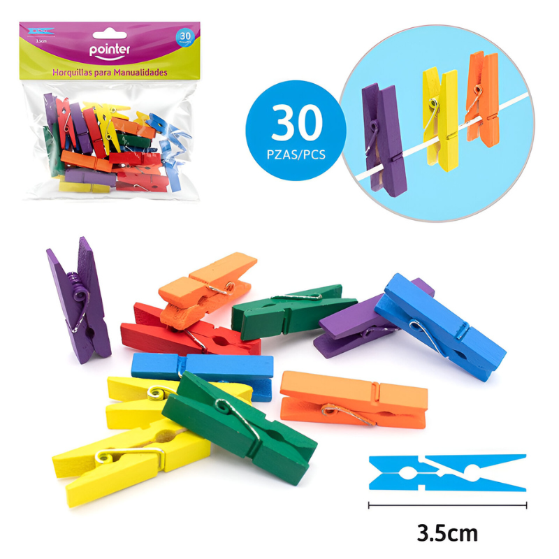 WASKNIJPERS GEKLEURD MINI HOUTEN 3.5CM PAK/30 ARG#CLIP-6-C