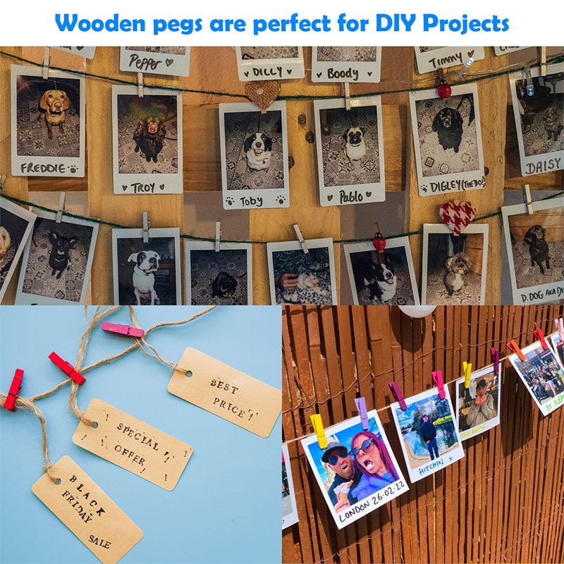 Kleine houten knijpers Kaartknijpers Gekleurd 30stuks 3,5cm