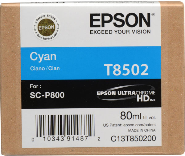Epson UltraChrome HD T8502 Cyan Ink Cartridge, 80ml