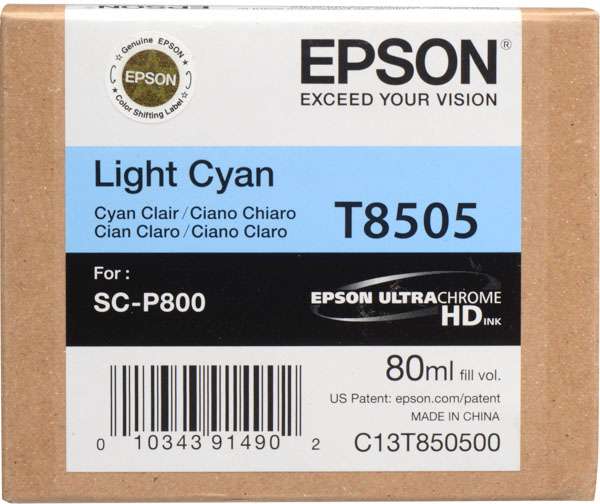 Epson UltraChrome HD T8505 Light Cyan Ink Cartridge, 80ml
