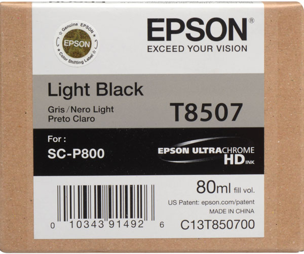 Epson UltraChrome HD T8507 Light Black Ink Cartridge, 80ml