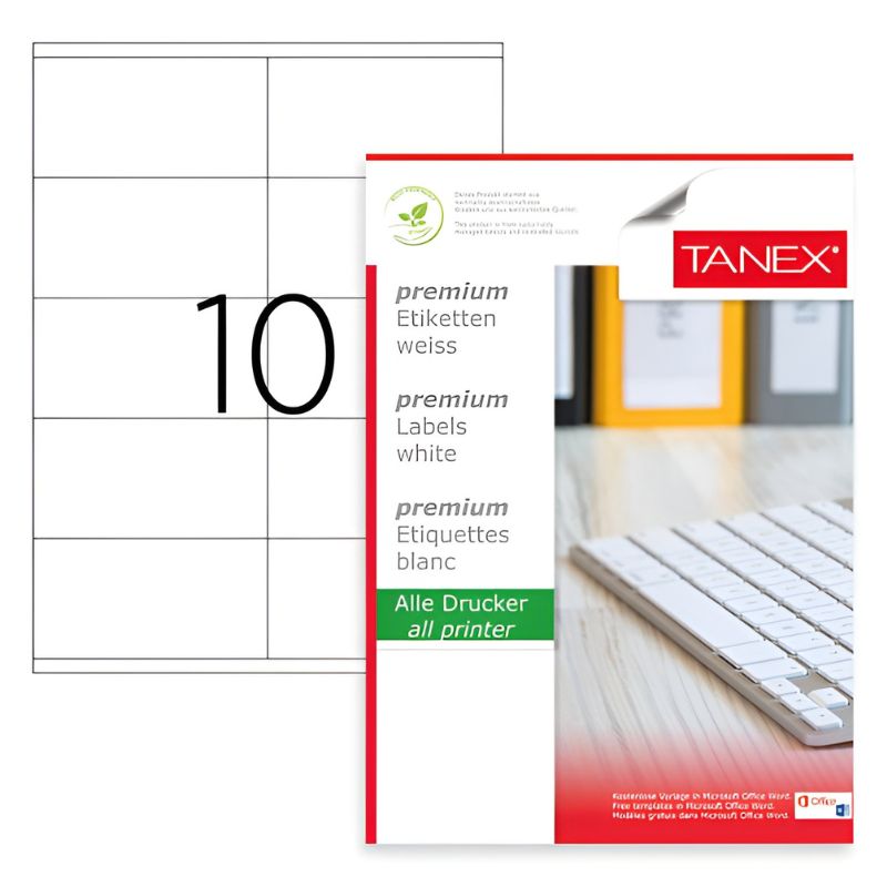 Tanex Wit Zelfklevend Etiket A4|105x56mm #TW2510