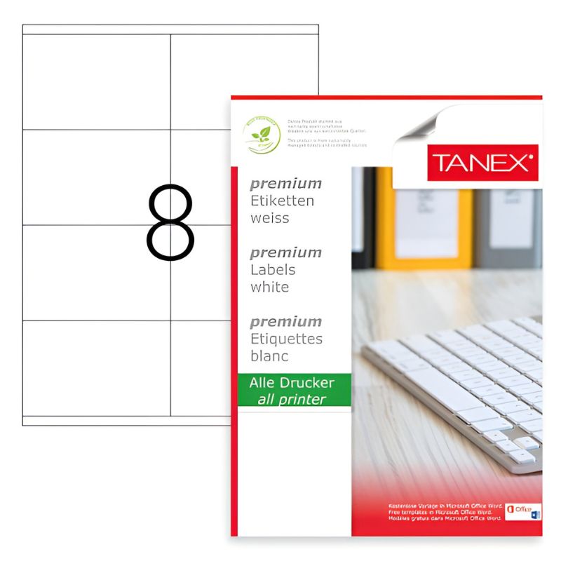 Tanex Wit Zelfklevend Etiket A4|105x70mm #TW-2208