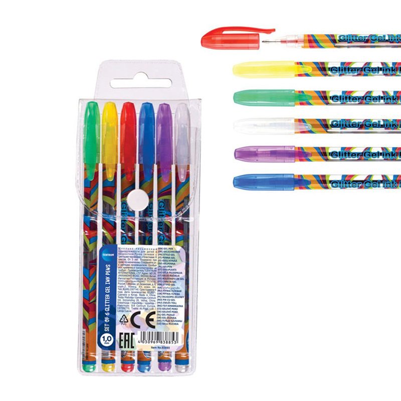 Glitter Gelpennen Set/6 – 1.0mm – Centrum #83885