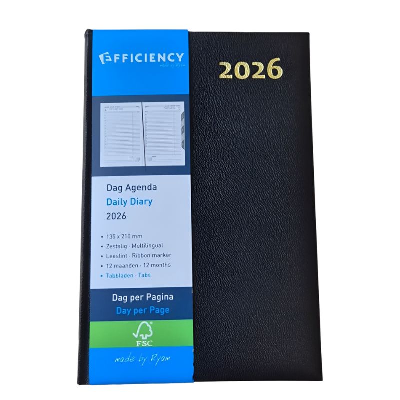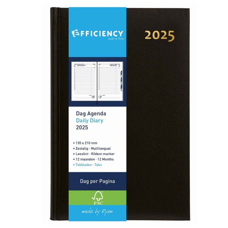 A5 Kantooragenda Zwart | 1dag / pagina + tabjes Ryam 8624600