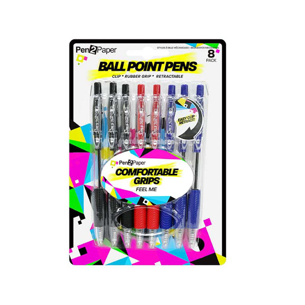 PENS BALL POINT SOFT GRIP 8PK UB#SE0271