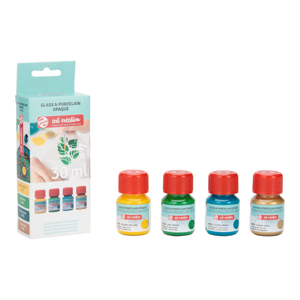 GLAS & PORSELEIN VERF ART CR. 4X30ML DEK.GROEN/GOUD R.T.#410