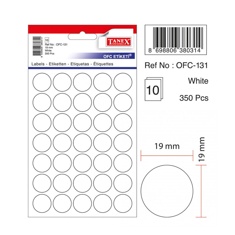 Tanex Zelfklevend Etiket 19mm – Wit #OFC-131W