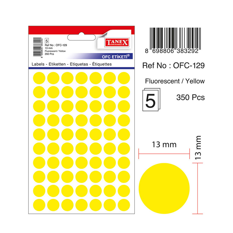 Tanex Zelfklevend Etiket 13mm – Geel #OFC-129Y