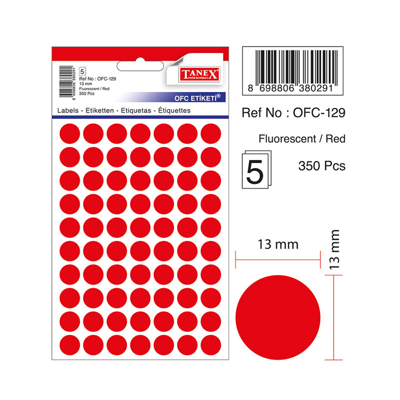 Tanex Zelfklevend Etiket 13mm – Rood #OFC-129R