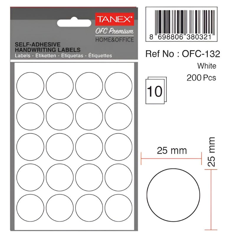 Tanex Zelfklevend Etiket 25mm – Wit #OFC-132W