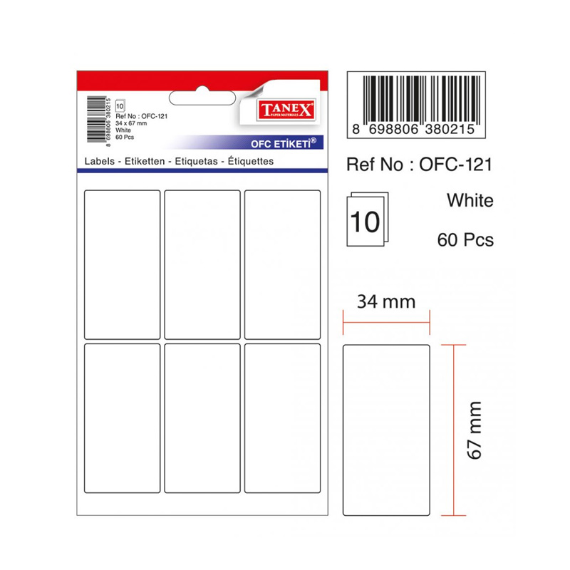 Tanex Zelfklevend Etiket 34x67mm – Wit #OFC-121W