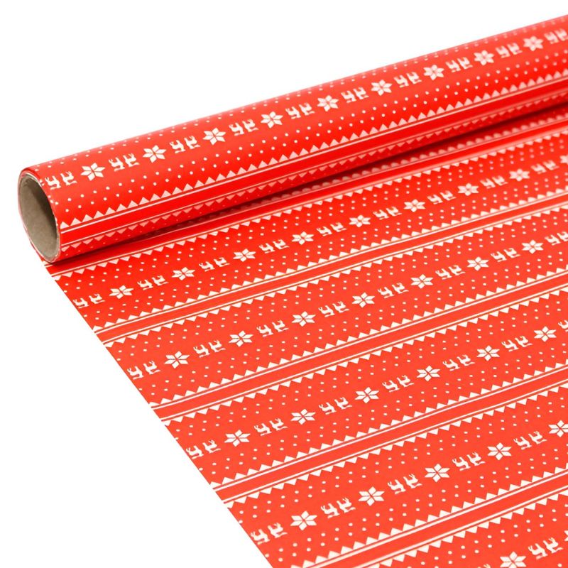 Cadeaupapier 76X250CM reindeer / sneeuvlok rood 50G kerst