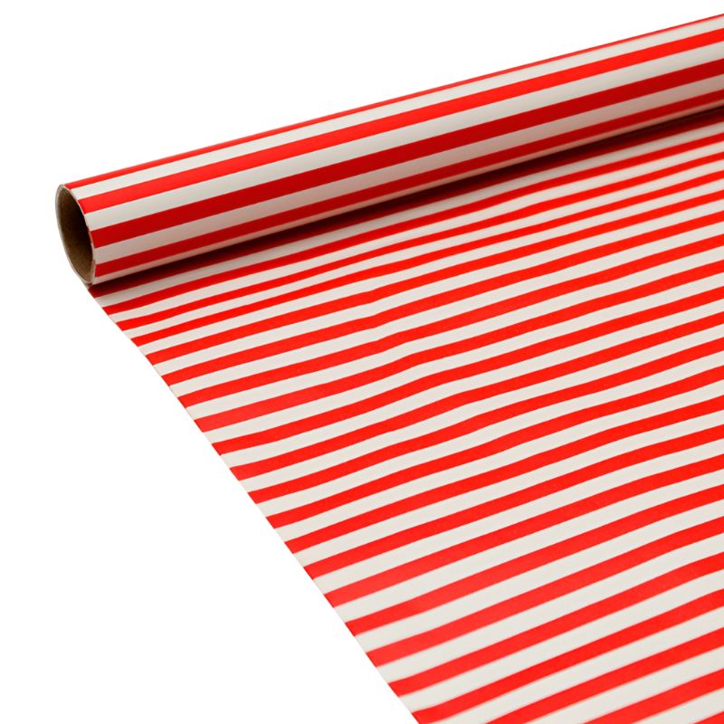Cadeaupapier 76X250CM rood/wit gestreept 50G kerstpapier