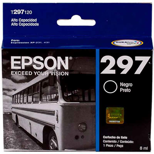 De Epson 297 Inktcartridge Zwart T297120 Black Inkt is bestemd voor de volgende printers: Epson Expression XP-231, XP-241, XP-431 en XP-441 All-in-One printers. Het model van deze cartridge is T297120.