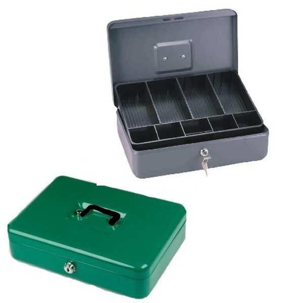 Deze metalen geldkist is krasbestendig en verkrijgbaar in de afmeting 358 x 253 x 110mm(LxBxH).