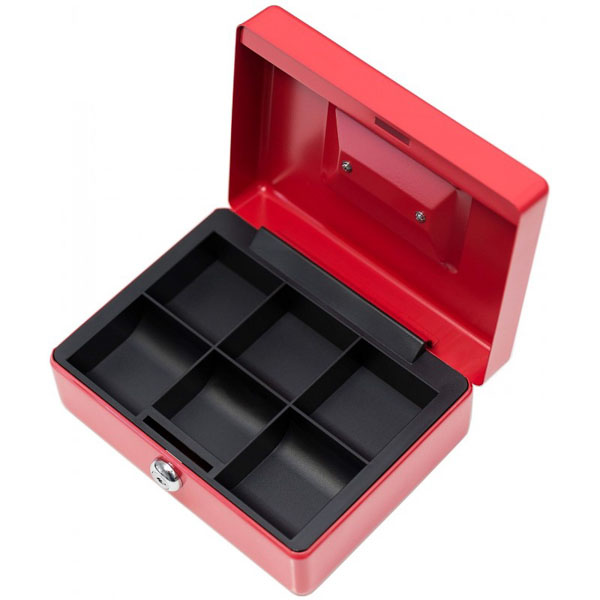 Deze rode geldtrommel is de ideale trommel voor diegenen die hun spullen veilig wensen op te bergen.