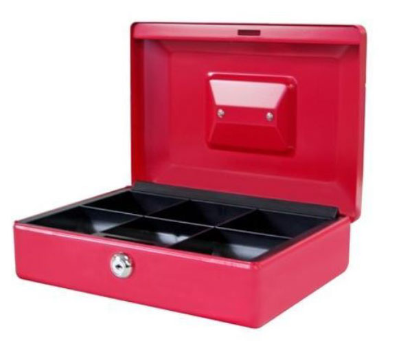 Deze rode geldtrommel is de ideale trommel voor diegenen die hun spullen veilig wensen op te bergen.