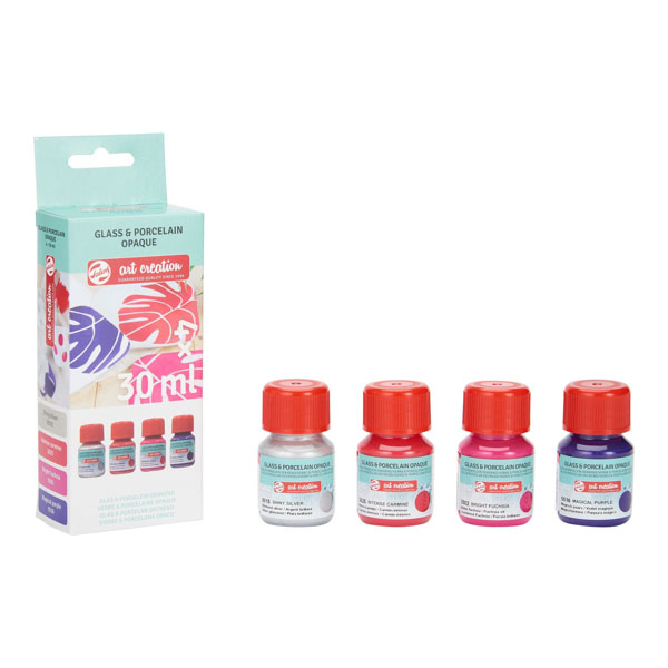 GLAS & PORSELEIN VERF ART CR. 4X30ML DEK. ROSE/ZILVER R.T.#4