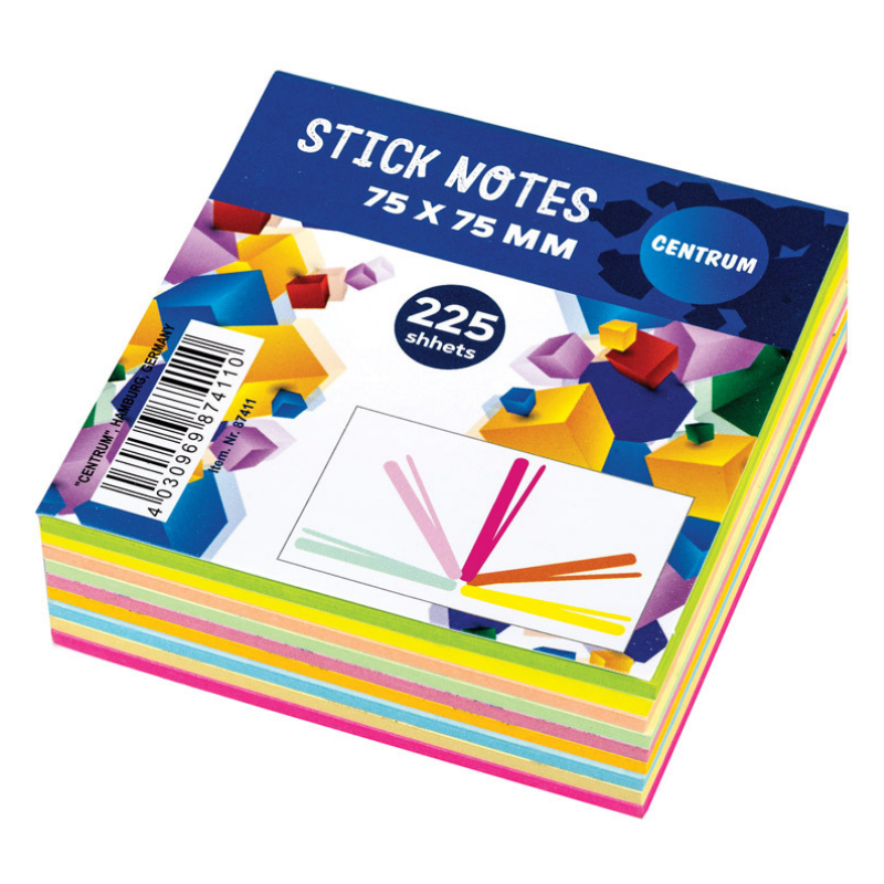 MEMOBLOK ZELFKLEVEND 75X75MM 225 VL NEON CNTR#87411