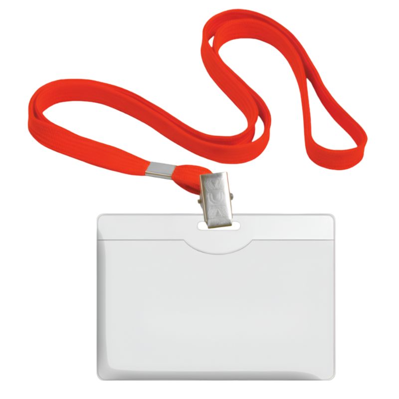 NAAMBADGE PLASTIC HOR. 90X57MM MET ROOD KOORD CNTR#91636