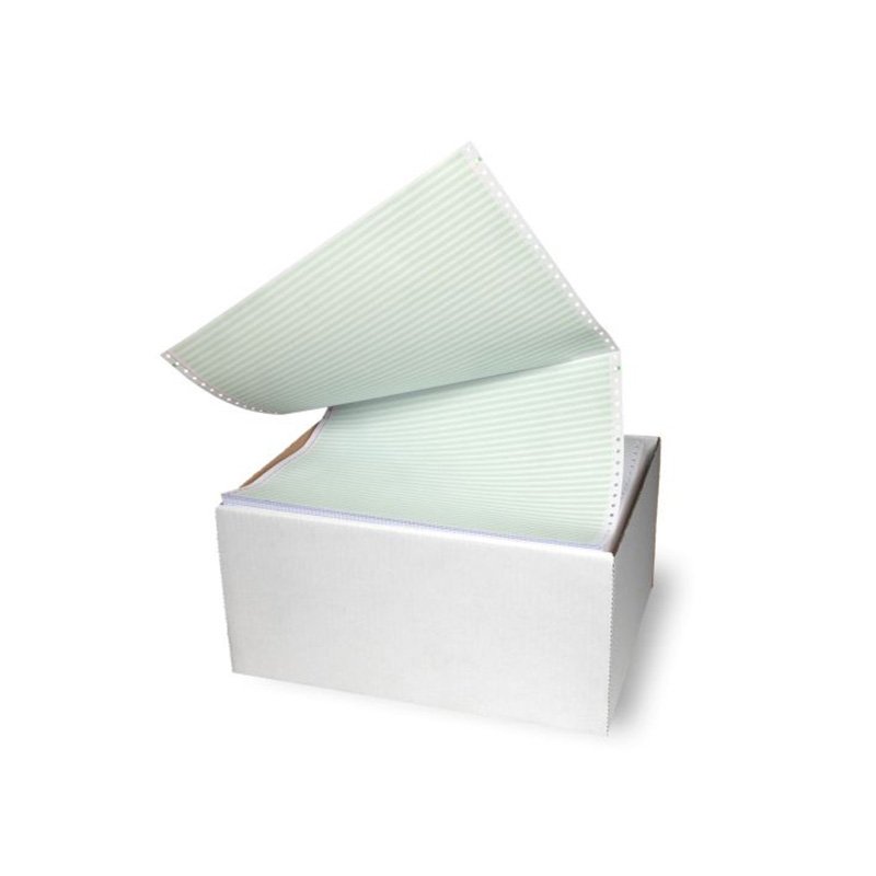 In deze doos ontvang je 1000 vellen screen 3-voud kettingformulieren die vooraf gescheiden zijn middels een afscheurperforatie. De perforaties liggen op 11inch van elkaar; de afmeting van elk formulier is 14-7/8×11 inch.
