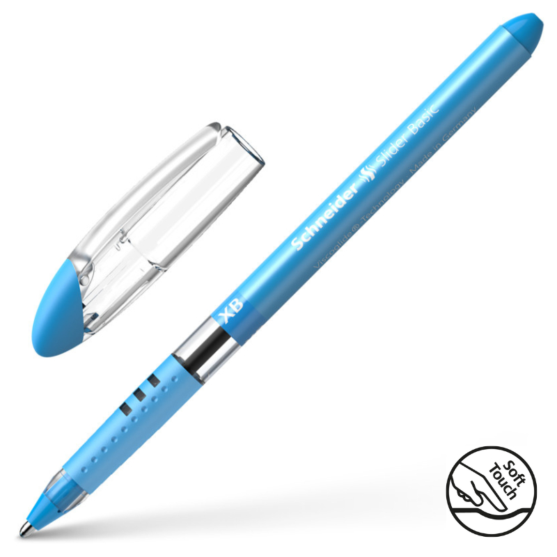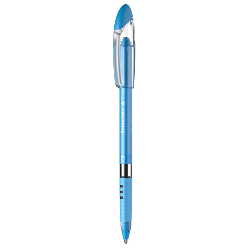 Balpen met Viscoglide® technology voor gemakkelijk, soepel schrijvend schrift. Schrijfkleur lichtblauw. lijnbreedte Extra Breed (XB. Sneldrogende inkt – zelfs op glad papier – en is veegvast zelfs in combinatie met een tekstmarker. Documentecht volgens de inktnorm ISO 12757-2. Slank design met een attractief gedecoreerde houder en dop met clip, die perfect past op beide uiteinden van de pen. De rubberen grip zorgt voor een vast en aangenaam schrijven. De slijtvaste roestvrij stalen punt garandeert dat de inkt volledig gebruikt kan worden en vlekvrij is. De Slider Basic is CO2 neutraal geproduceerd.