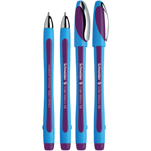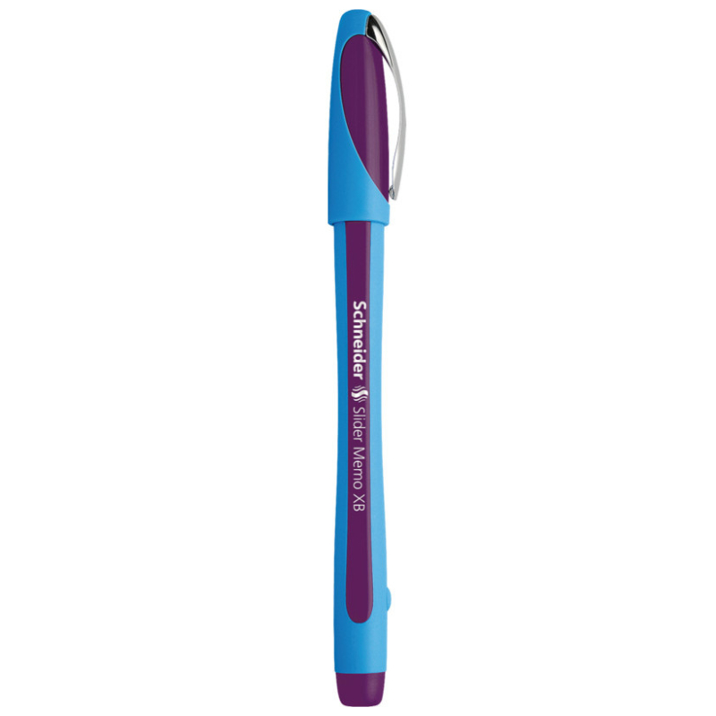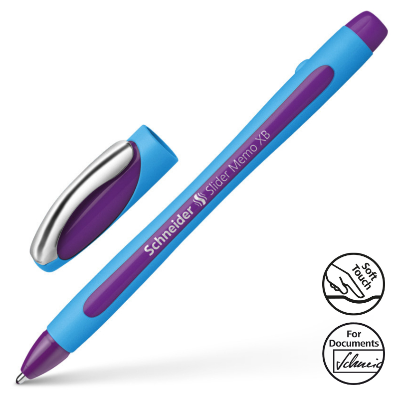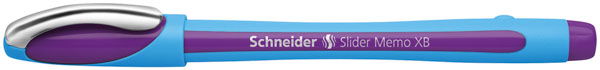 Balpen met Viscoglide® technology voor buitengewoon makkelijk en glijdend schrijven. Schrijfkleur violet. Lijnbreedte Extra Broad (XB). De inkt is sneldrogend – zelfs op glad papier – en is ook in combinatie met een tekstmarker vlekvrij. De ergonomisch gevormde, rubberen houder is ontworpen voor ontspannen schrijven zonder schrijfvermoeidheid. De dop heeft een stevige metalen clip en past aan beide uiteinden van de pen. De slijtvaste roestvrij stalen punt garandeert dat de inkt volledig gebruikt kan worden en vlekvrij is. De Slider Memo XB is CO2 neutraal geproduceerd.