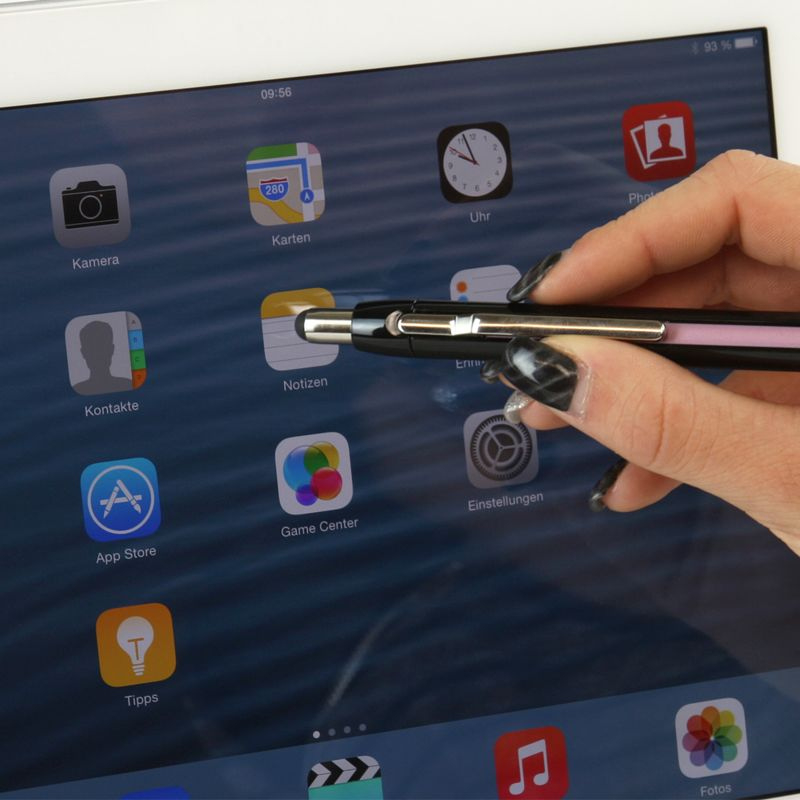 Stylus balpen voor tablets en smartphones. De soft-touch kap maakt exacte navigatie mogelijk op alle touch screens en voorkomt vingerafdrukken. Werkt ook in combinatie met de meeste handschoenen. De balpen combineert klassiek design met moderne elementen. Opvallend is de gedeeltelijk teruggetrokken metalen clip en horizontale, kleur aangevende rubberen strepen die langs de houder lopen. Het zijn 3 gegolfde lijnen van een zacht materiaal; ze stellen het motief van Schneider voor en voorkomen dat de vingers gaan glijden. Vervangbare jumbo vulling Slider 755 Extra Broad (XB) met Viscoglide® technology voor buitengewoon makkelijk en glijdend schrijven. Schrijfkleur blauw, documentecht volgens de inktnorm ISO 12757-2. De slijtvaste roestvrij stalen punt garandeert dat de inkt volledig gebruikt kan worden en vlekvrij is. De Epsilon heeft een verende clip en dankzij het slimmer Plug+Play systeem geschikt voor verschillende formaten vullingen.